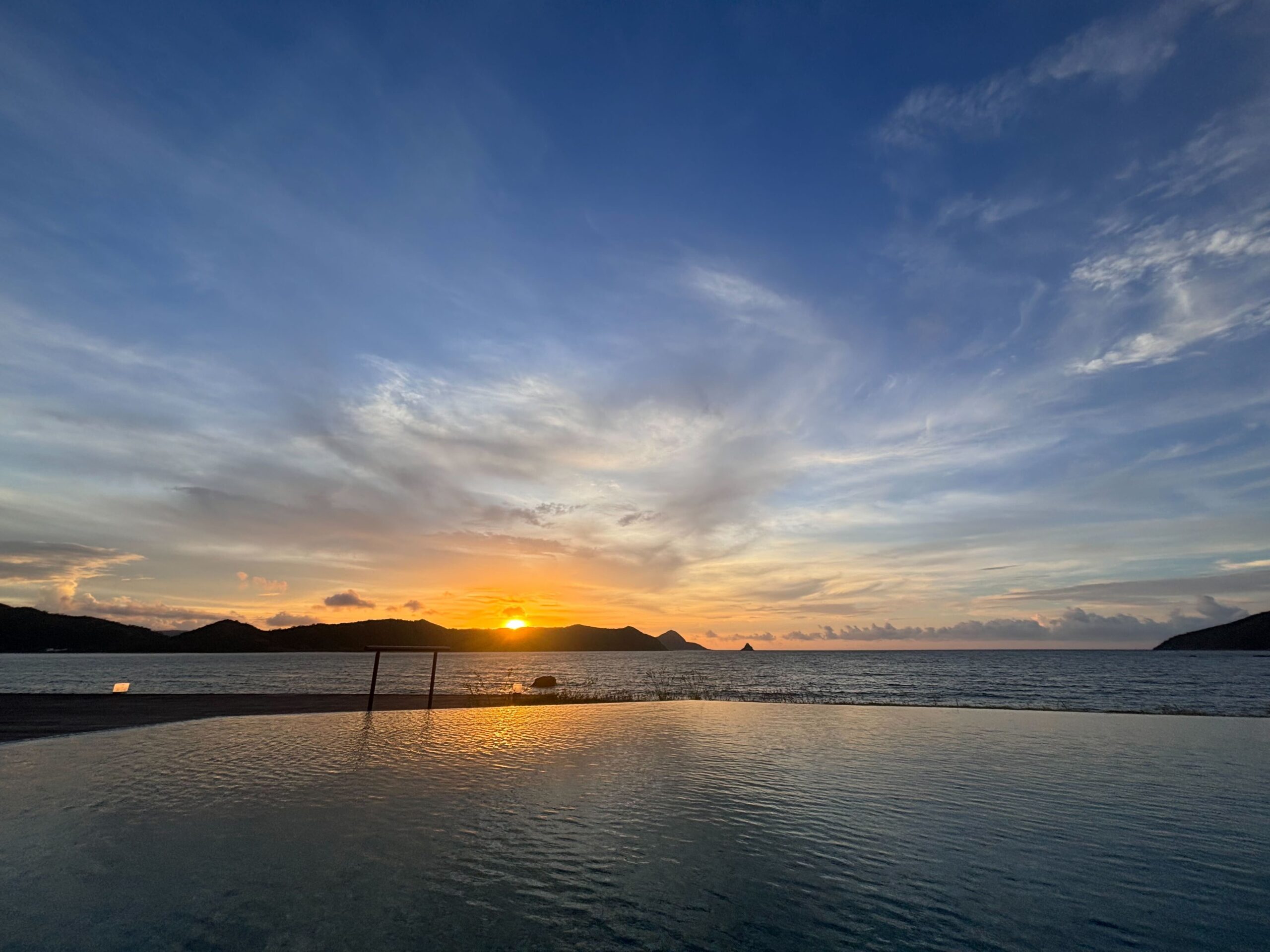 そこでふと顔を上げると、海の向こうで太陽が沈みかけていました。